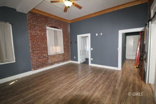 This spacious three-bedroom, four-bath home offers an impressive amount of living space just a stone's throw from downtown. Each bedroom features its own bathroom, providing comfort and convenience, along with an additional guest bath. The home boasts a large kitchen complete with a generous island and bar seating-perfect for both everyday living and entertaining. Blending modern updates with timeless character, you'll appreciate the exposed brick accents throughout and the soaring high ceilings that give the home a warm, open feel. In addition, the property includes a versatile storage/workshop area with convenient access from both the backyard and Hill Street-ideal for projects, extra storage, or hobbies.